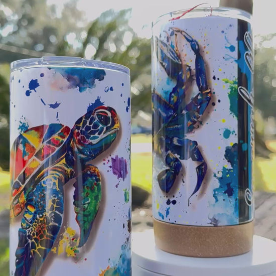 Bring a splash of coastal charm to your day with this 17oz tumbler featuring Claude the Crab—my original, vibrant blue crab artwork. Designed with a stylish cork-like bottom for added grip, warmth, and stability, this tumbler is both eye-catching and practical. Perfect for keeping drinks at the right temperature while adding a pop of seaside personality, it’s an ideal choice for beach lovers, crab fans, and anyone who enjoys art on the go.