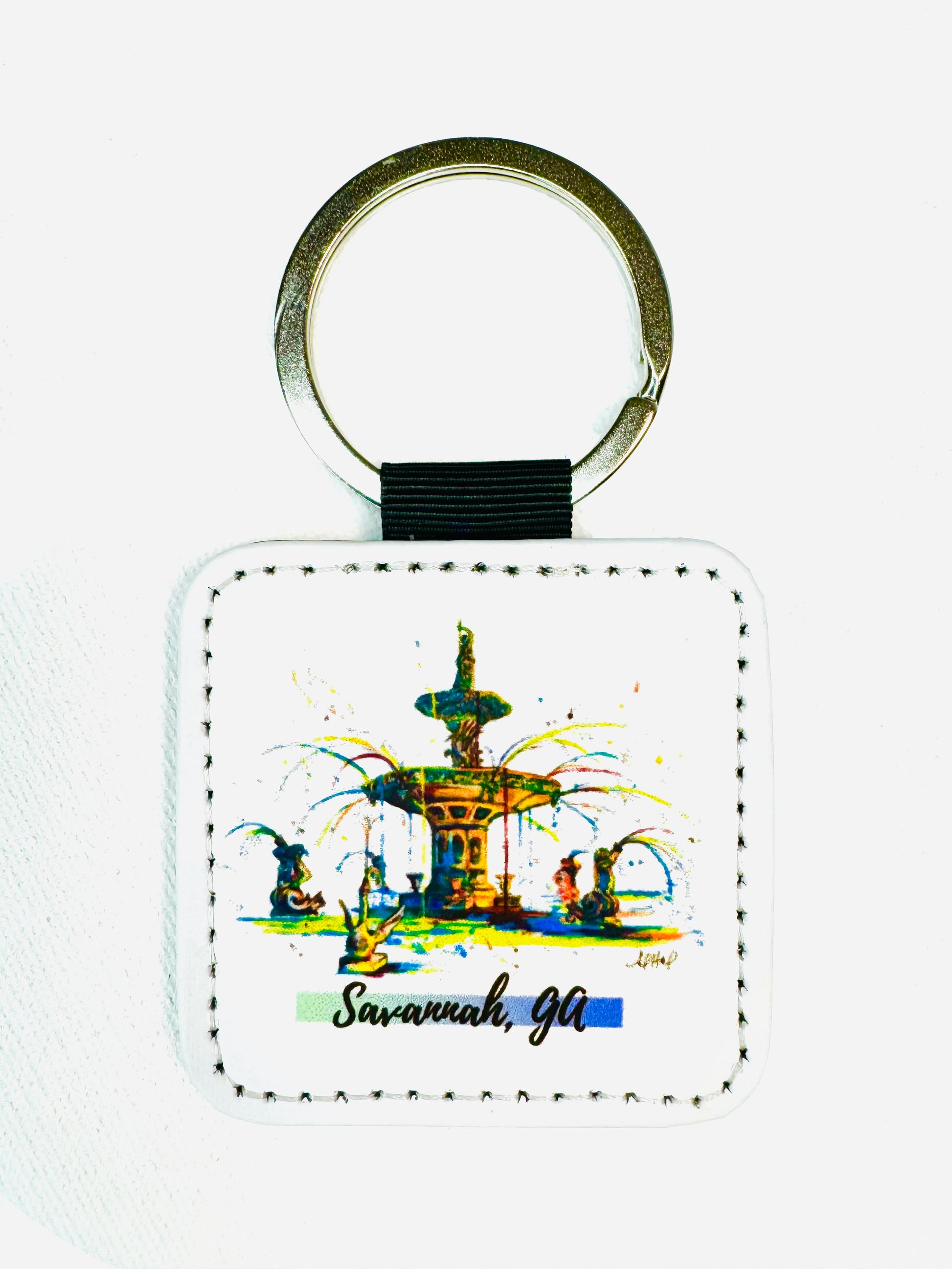Carry a little piece of Savannah everywhere you go with this Forsyth Park fountain leather keychain. 🌿✨