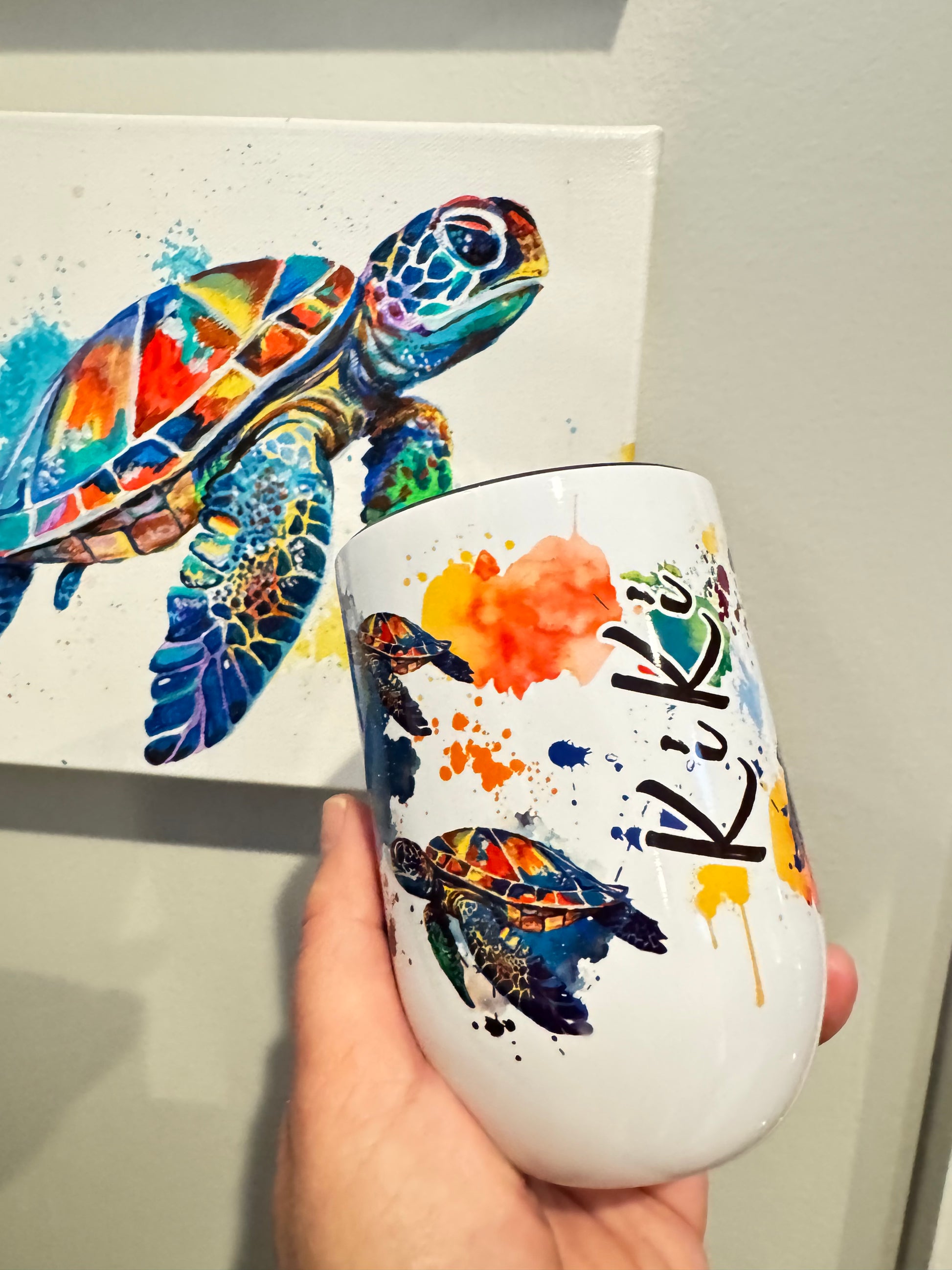 Sip in coastal color with Nugget—the happiest little sea turtle in the ocean!”