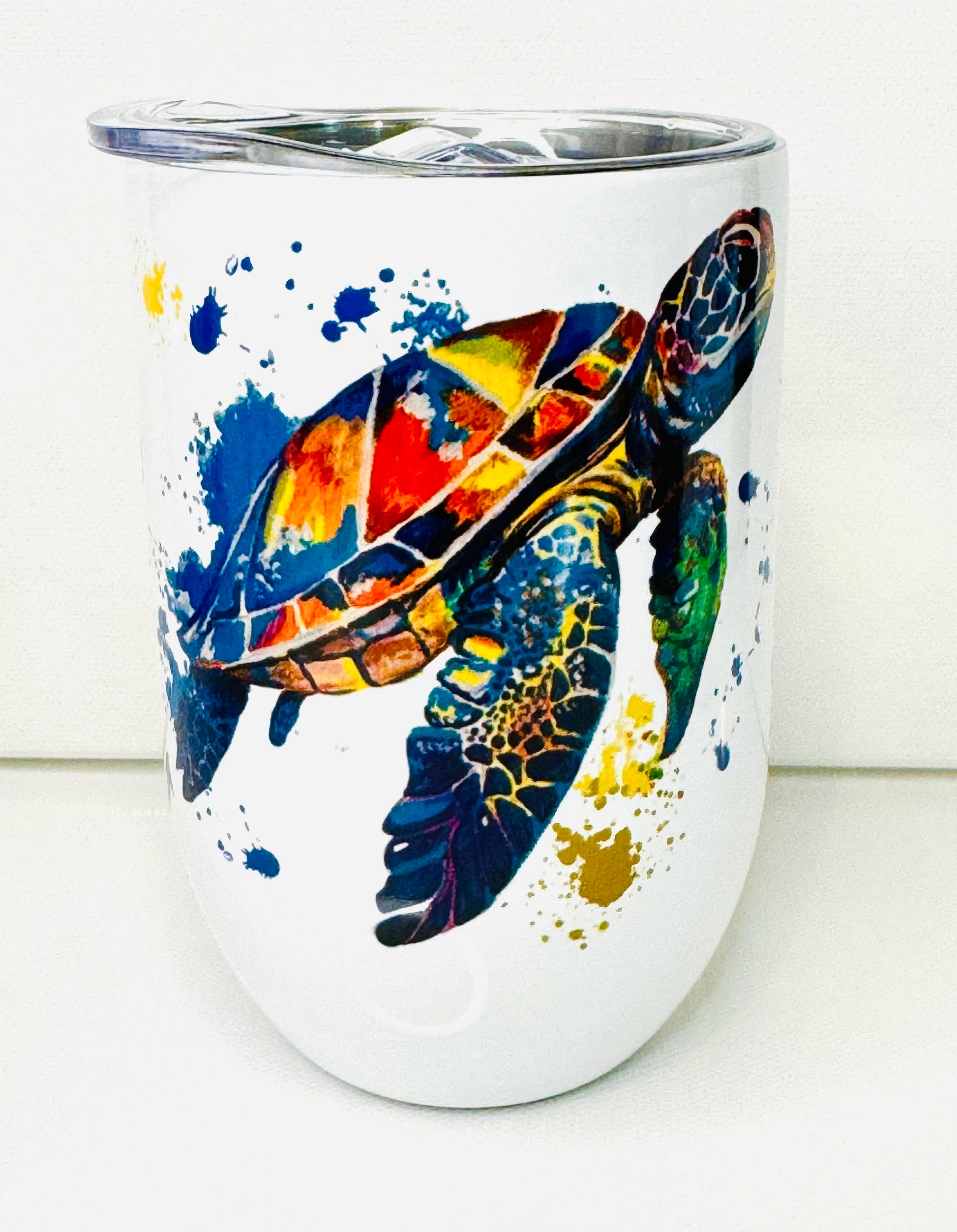 This 12oz wine tumbler features my original, vibrant artwork of Nugget, bursting with tropical hues and joyful personality. Its insulated design keeps your favorite drink perfectly chilled, whether you’re relaxing on the beach, lounging on the porch, or unwinding after a long day. Lightweight, durable, and full of charm, this tumbler brings a splash of seaside magic to every sip.