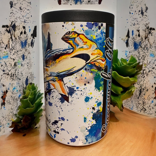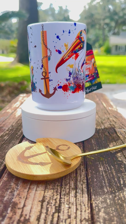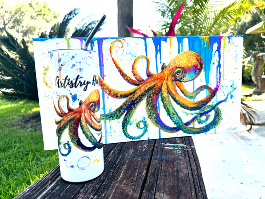 I have a few pieces of April’s artwork. I love her combination of color, fun, and sea life. I have also purchased a lot of her custom cups. I’m often stopped by strangers asking me where I got them.